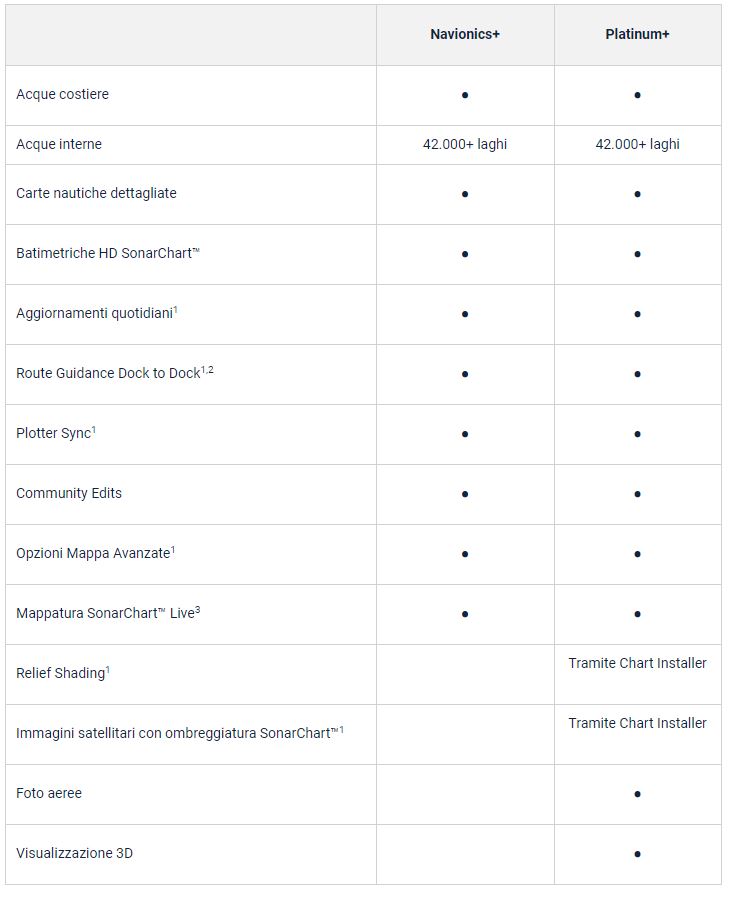 Verifica la compatibilità dei contenuti e delle funzioni Platinum+ con il tuo plotter GPS.