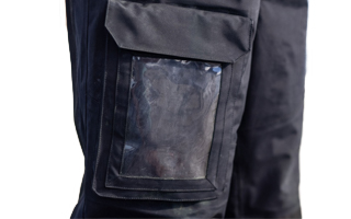 Tasca cargo trasparente sulla gamba destra compatibile con i touchscreen.
