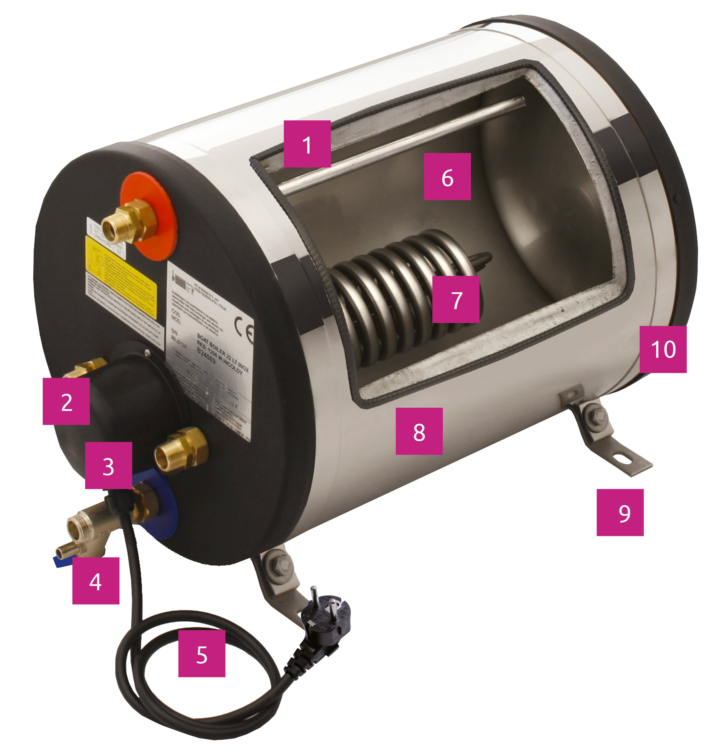 - La resistenza da 1200W 220V permette di riscaldare rapidamente l'acqua a bordo quando si è in porto o in campeggio (per furgoni e camper).