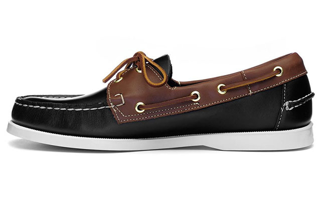 La scarpa da barca docksides portland lea waxy brown/nero di Sebago in dettaglio ...