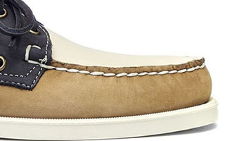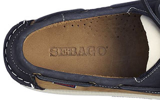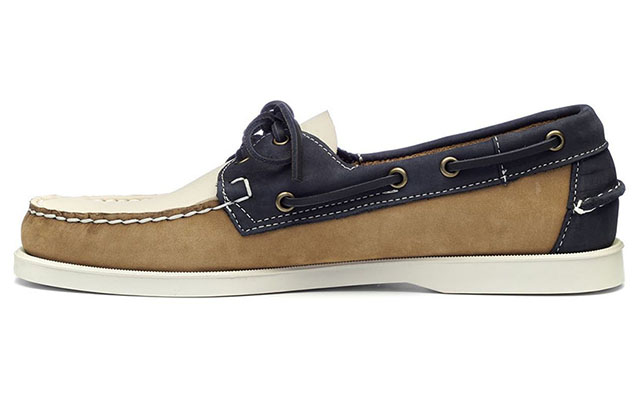 La scarpa da barca docksides portland archive beige/blu di Sebago in dettaglio ...