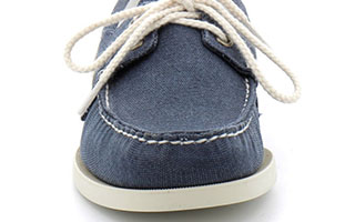 Questa scarpa da barca è realizzata in tela lavata spessa e resistente per una lunga durata.